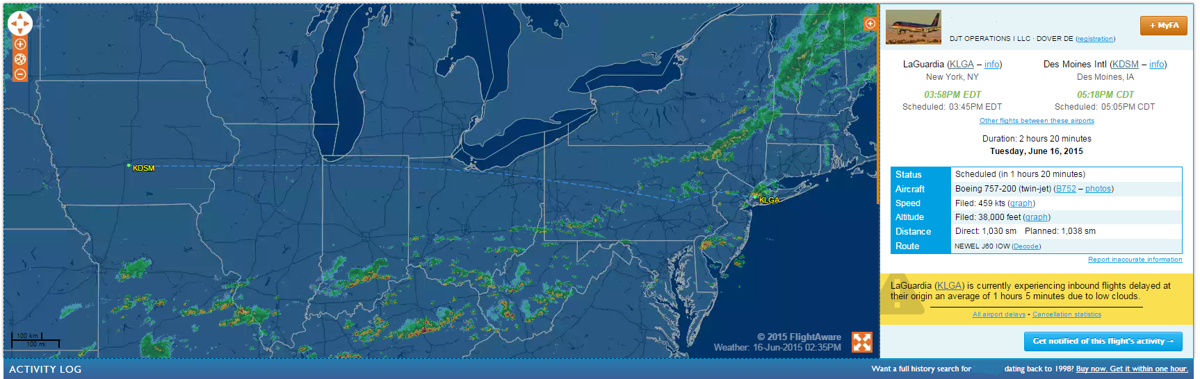 ](/wp-content/uploads/2015/06/Trump-flightaware.png)Trump is no stranger to self-promotion, as is evident by the paint job on his 757, so campaigning for President should come as 2nd nature to the real estate tycoon. If he does succeed in winning the upcoming election, Air Force 1 may be getting a Trump paint job. So does the Donald have what it takes to win an election in 2016? Only time will tell, but one thing is for certain, he has the means to create a memorable if not effective campaign.